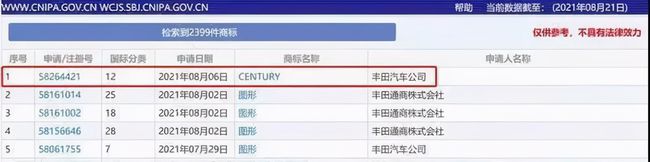 丰田在国内注册“世纪”商标,或成立高端日系品牌,专供中国