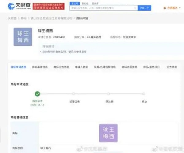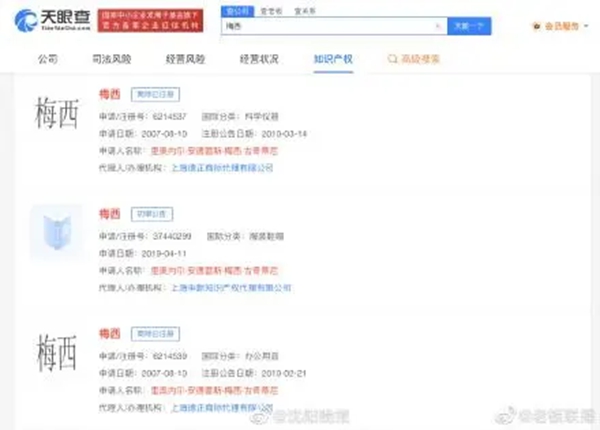 天眼查App显示,我国已有数百枚“梅西”相关商标申请信息,除“梅西”外,还包括“梅西先生”“梅西比分”“球王梅西”“里奥梅西”“梅西金靴”等,其中部分商标已完成注册。