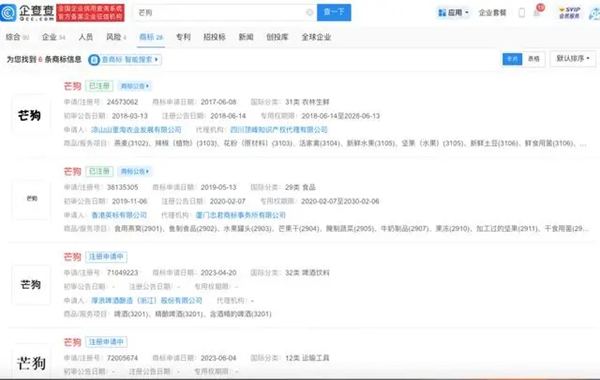 “芒狗”已被申请注册商标
